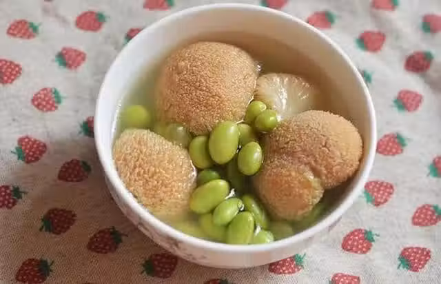1、毛豆剝去殼,猴頭菇提前一晚浸泡;