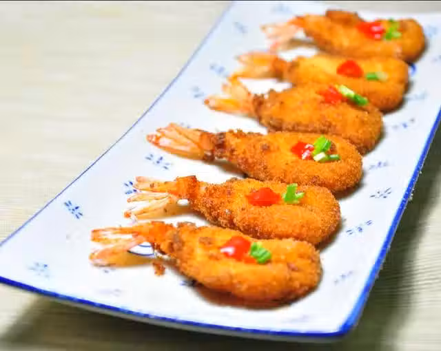 大蝦、雞蛋、麵包屑、料酒、鹽