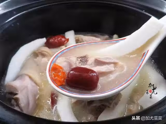 6、最後再倒入枸杞煮1分鐘後,加入小半勺食鹽提味,出鍋前撇去表面多餘的雞油即可。