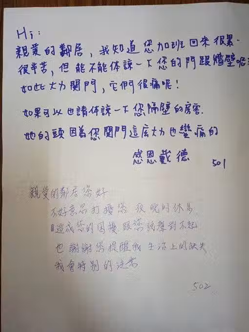 鄰居愛深夜摔門!她睡不著「留下字條委婉提醒」隔天竟發現「鄰居超意外回覆」一秒氣消