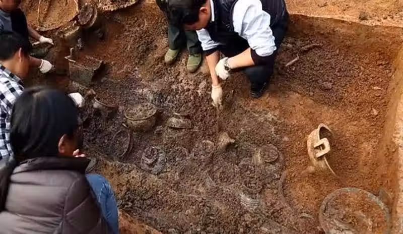 隔了幾天,夫妻倆在看電視的時候,看到一條新聞:某地發現了一個古墓,挖出來了不少寶貝!
