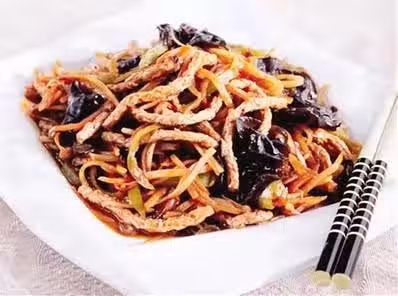 食材:素肉絲,胡蘿蔔,柿子椒,土豆,黑木耳,色拉油,食鹽,醬油,醋,姜,水澱粉,豆瓣醬,白糖