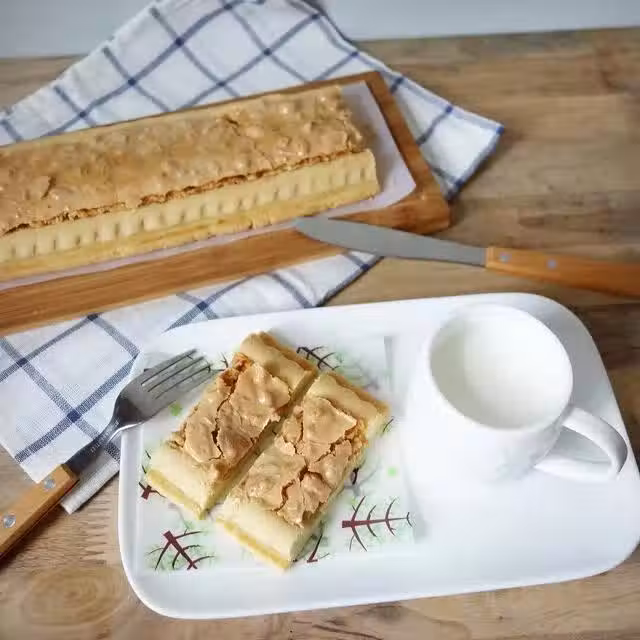 把大份麵糰擀開,成6mm厚薄的方形底胚。