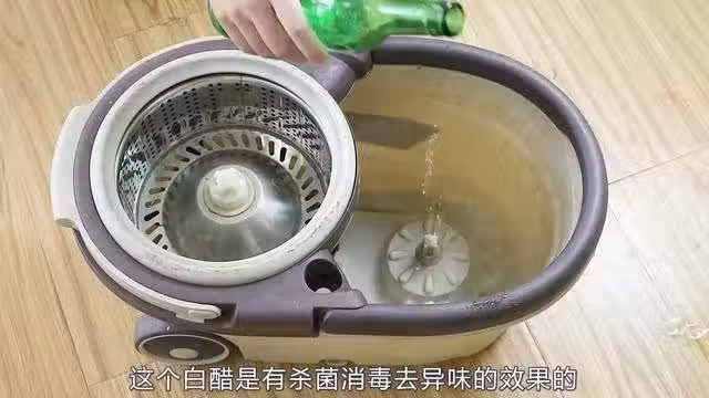 將自製溶液弄好以後,我們便用它來清洗拖把,隨後再進行拖地,這樣效果更好。