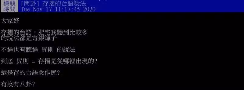 不少網友看到發問後,也紛紛質疑:「存這個字,到底跟『口』的發音哪裡像,超不懂的!」、「我有聽過另外一個說法,好像是『寄金簿』,不過老一輩的人好像會說『口座』的樣子,不知道是不是口音的問題。」