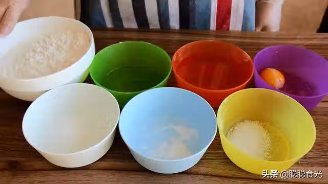 中筋麵粉300克,小蘇打2克,泡打粉3克,鹽5克,雞蛋1個,水150克,玉米油15克