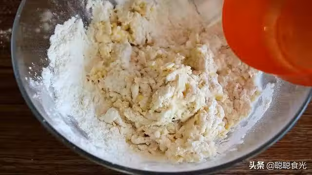 步驟二:攪勻後開始加水,水千萬不要一次性全加進去,因為麵粉吸水量不同,邊用筷子攪邊加水,攪成面絮之後,留少量水。