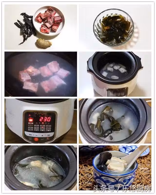 第六步:燉到一個半小時左右,將海帶放入鍋中。蓋好蓋兒,再接著燉。