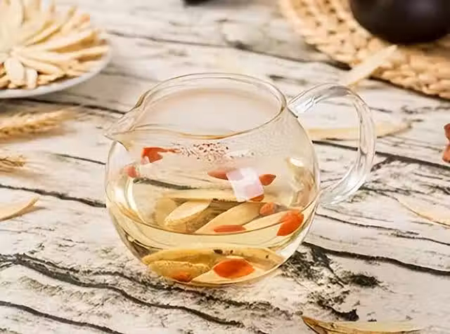 黃芪中存在很多的多糖、微量元素、胺基酸等成分,當有有由於肺虛、脾虛引起的咳嗽、乏力現象時,飲用黃芪泡水能夠有效改善。飲用黃芪泡水也可以促進人體內蛋白的控制,對胃潰瘍、肝病、胃炎能起到防治作用。