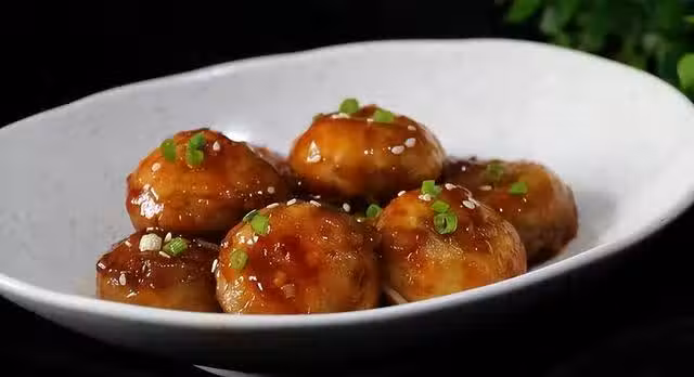 6:等口蘑表面都均勻地裹上醬汁,撒上一點小蔥末就可以出鍋了;