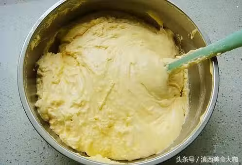 9 、篩入餘下的麵粉,繼續翻拌均勻無乾粉即可。