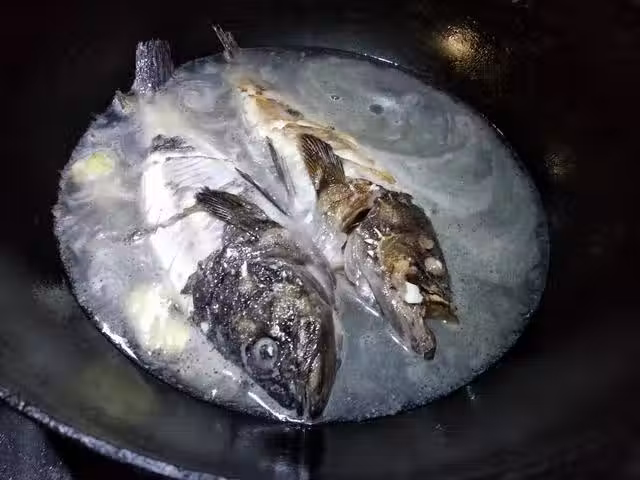 熬魚湯用豬大油來熬湯,不僅可以去異増香,還能使豬大油中的脂肪迅速跟水融合乳化,從而使魚湯的顏色濃如牛奶,因為豬大油的沸點要比大多數植物油脂都要低一些。