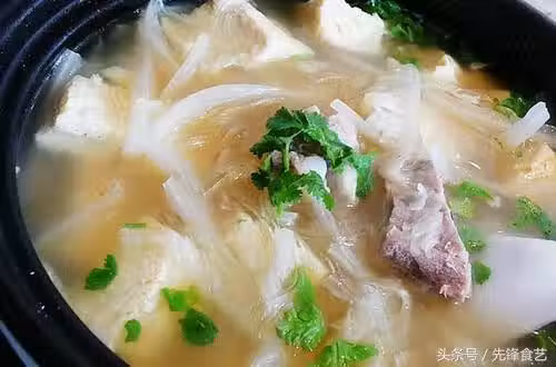 材料:凍豆腐、酸菜、龍口粉絲、口蘑、松蘑、香菜