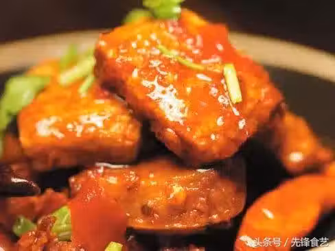 3、放入豆腐塊兒翻炒,撒入少量鹽。
