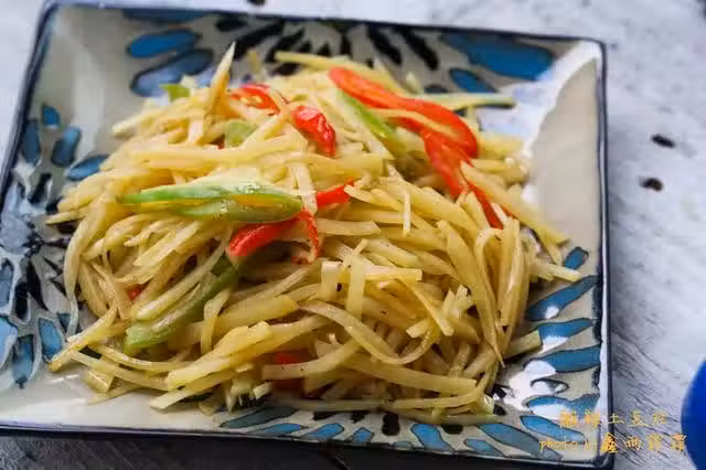 3炒土豆絲的時間不能長,一定要掌握好火候,炒勻立刻加調料,再炒勻,立刻準備出鍋,動作要快。往往差一分鐘,土豆絲就會過熟變軟不好吃。