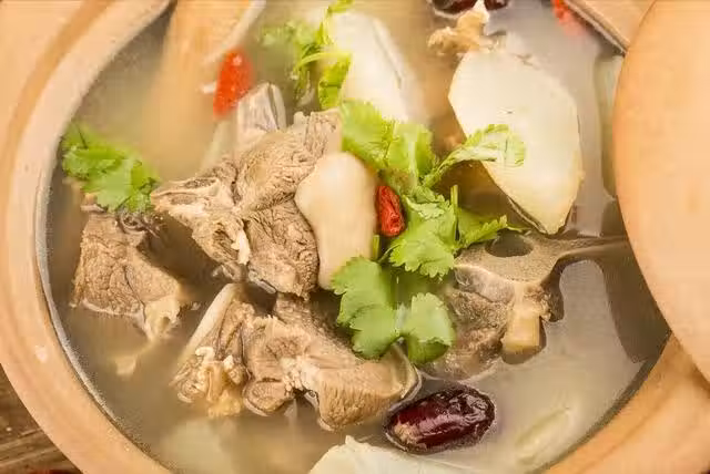 羊肉切塊後,清洗乾淨,最好在水中泡1個小時,接下來倒入冷水鍋內,加上蔥姜、倒入料酒,開始焯水,焯水後把沫子撇掉。直至完全撇乾淨後,蓋上鍋蓋燉1個小時。到時間後,可以放點白蘿蔔一起燉,不喜歡的話,直接加鹽、白鬍椒粉調味,然後撒上香菜,開喝。