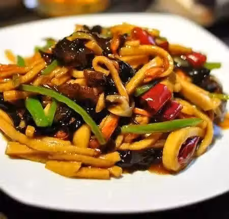 3)2勺糖1勺醋2勺番茄醬2勺水1勺醬油調成汁待用。4)豆腐撈出瀝干水分,熱鍋涼油,放蒜末爆香,放胡蘿蔔木耳翻炒,聽到木耳爆出響聲,放豆腐翻炒至金黃色,放調好的汁小火咕嘟一下,放一勺鹽,待湯汁濃稠後關火,出鍋裝盤撒上小香蔥即可。