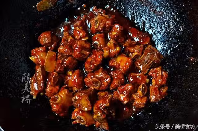 3、燜排骨放水時,最好一次性多放點,排骨熟了,用大火收汁就行,如果太少,沒熟水已燒乾,再添加,味道就會打折扣了。