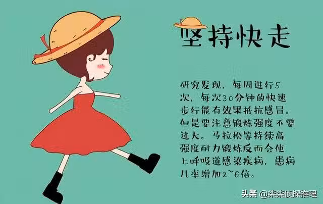 7、每周進行5次快走,每次30分鐘,這樣可以有效地抵抗感冒。