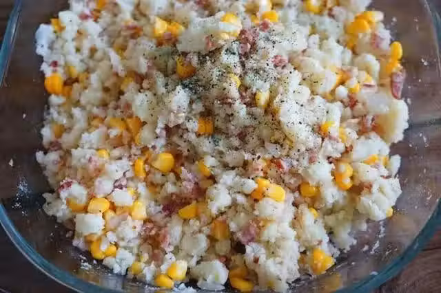 8.手裡抓適量的土豆泥,然後用手輕輕的團成圓劑子,其實這個不能搓,很容易散開,所以只能往裡擠,然後輕輕的按壓,記住一邊按壓,邊緣一邊往裡收一點 這樣邊緣才好看哦,大概做個一個左右你們就有經驗了