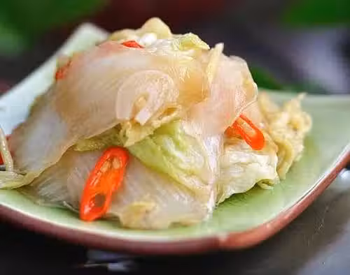 做法:1)白菜去老幫洗凈用刀片成薄片,白菜幫和白菜葉分開。