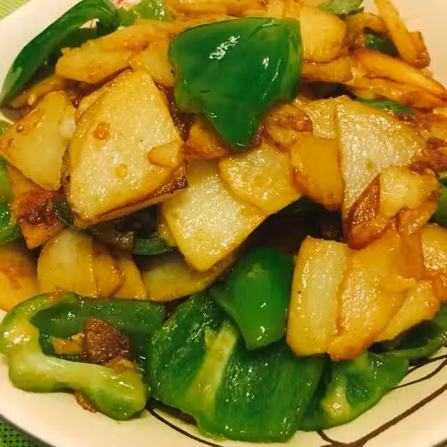 土豆1-2個,視大小而定;小青椒(最好不要用厚肉的菜椒3-4個;醬油依口味適量;花生油