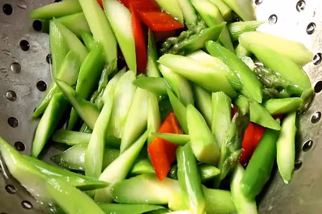 4.鍋內再燒水,加入少許食鹽和植物油,水燒開以後把蝦肉依次下入鍋中,快速焯水30秒、蝦肉微紅打卷以後撈出,用清水沖洗乾淨備用。