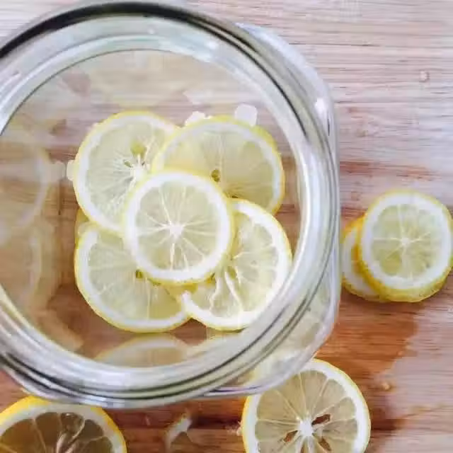 第四步:倒入白醋,白醋一定要把檸檬淹沒。