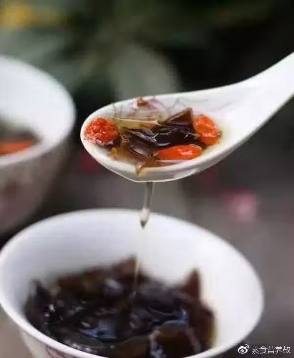 材料:黑木耳30克,冰糖50克,枸杞10克,桂花1茶勺