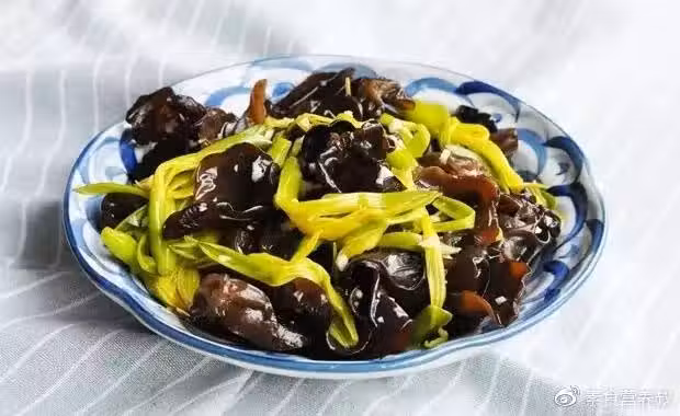 材料:黑木耳50克,黃花菜500克,素高湯、鹽、水澱粉各適量