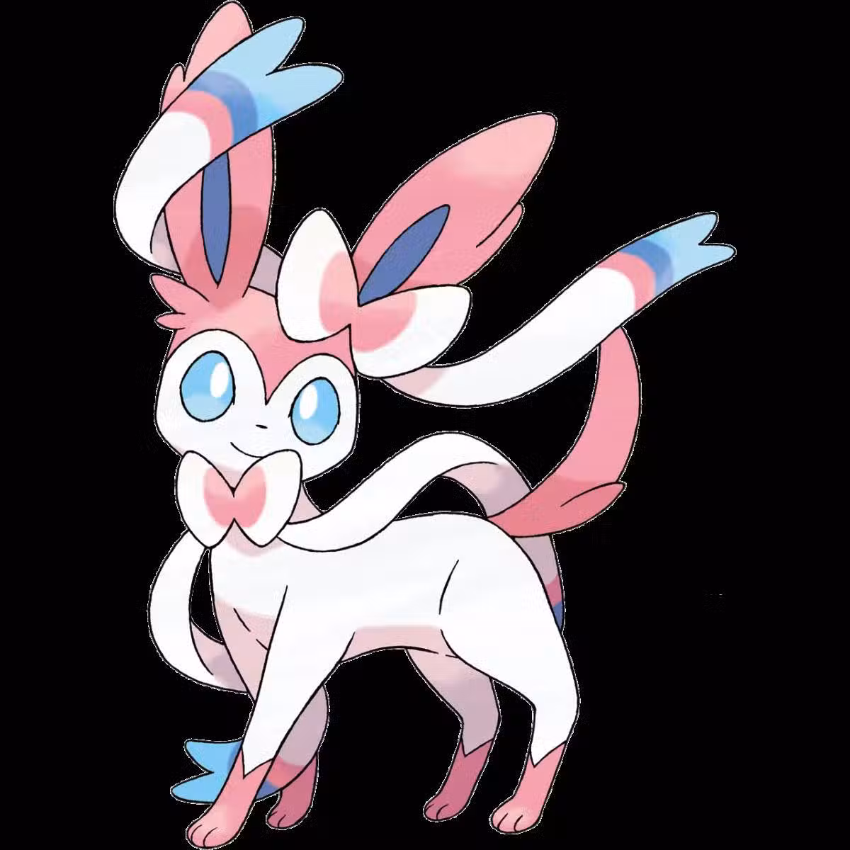 妖精伊布性格大膽,即便是面對龍系寶可夢也會無畏地沖山上前去。耳朵邊漂亮的緞帶是她引以為傲的觸角,她會用這對觸角表現自己的心情。