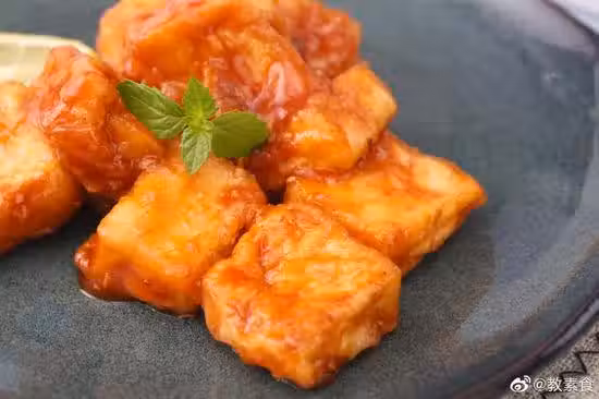 把豆腐裹上麵粉炸得酥香酥香,再把番茄紅汁和調製的料汁收得濃稠,倒入豆腐裹勻醬汁,噴香出鍋!