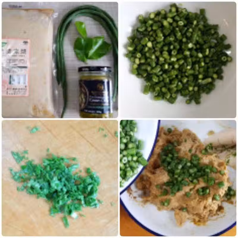 6 .燒熱平底鍋,將素魚餅加入鍋中。