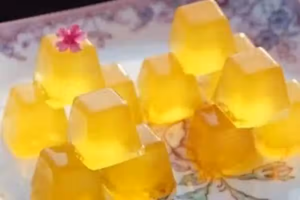 明膠粉50g,橘子汁120g,白砂糖40g,蜂蜜10g,開水100g