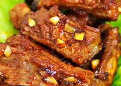 2、排骨中加入蒜末、鹽、料酒、生抽、番茄醬、辣椒粉、排骨醬、胡椒粉、少許油,醃制4個小時以上;