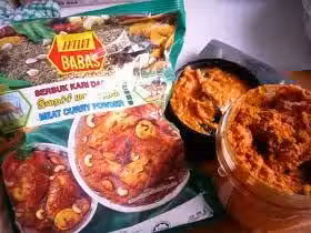 5. 在熱油內以小火炒香辣椒醬料,加入咖喱葉、拍打過的香茅、桂皮