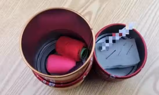 然後將家中各色線團放在茶葉盒裡,用完針線後直接放回,把鐵皮盒擰上,放在家裡就不用擔心寵物和孩子受傷了。