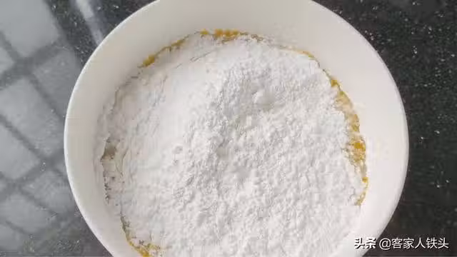第四步:準備一個足夠大的容器,家裡隨便一個大碗或玻璃碗都可以用的,容器裡面刷上薄薄一層油,這樣方便小糕點蒸好後後脫模,刷好油後,倒入調好的粉漿。
