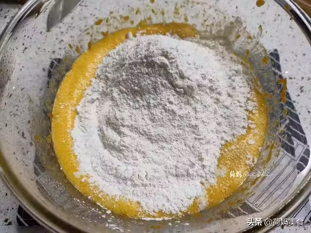 4、拌好的南瓜糊呈現的是這樣的狀態,比較黏稠,掛在筷子上不滴落就可以。然後蓋上保鮮膜放置一旁,醒發至2倍大即可繼續下一步操作了。