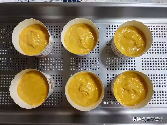 蒸的時間也是不固定的,像我這樣的中號紙杯的量20分鐘足夠,如果是6寸或是8寸的蛋糕模具,時間要適當延長,一般40分鐘就可以。