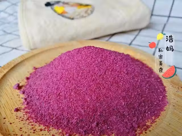 紫薯粉做法非常簡單,但是耗時比較長,需要烤箱低溫長時間烘乾或者放陽台上晾曬乾,如果碰到下雨陰天最好還是用烤箱來解決問題。做好的紫薯粉需要密封保存,防止受潮,做麵食的時候放上一些,增加色彩,最重要的是沒有任何添加劑,漂亮又健康。