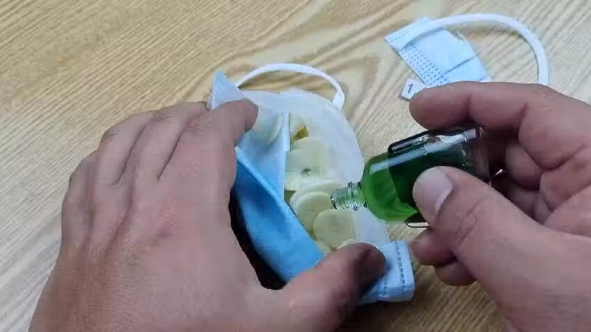 5.最後,把口罩的開口處給紮緊,這樣一個簡易的驅蚊包就製作完成了。