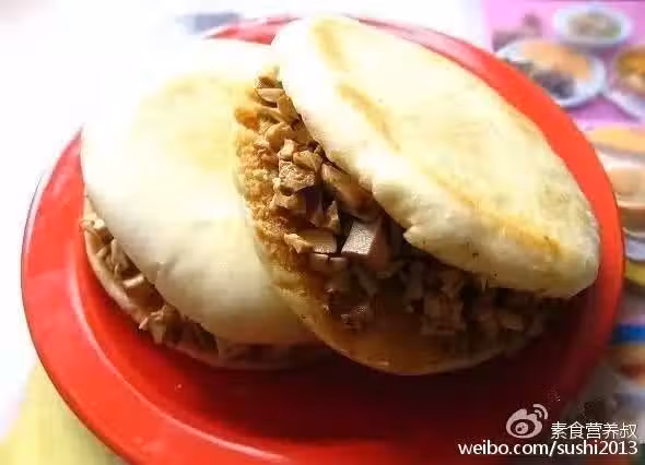 6.把饃切開,夾上切碎的豆乾,再淋上點湯即可。