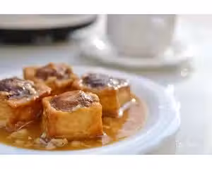 來個細節圖看看.醬汁飽滿.釀入的肉吸收了湯汁.配上香煎的豆腐.怎麼吃都不會覺得膩.如果喜歡香辣的醬汁.可以在煮醬的時候加入你喜歡的調料就可以咯.除了釀豆腐.客家釀還有釀苦瓜.茄子,喜歡葷素搭配的小夥伴可不要錯過了噢.