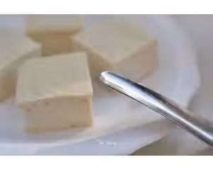 湯匙插入豆腐後轉個圓.深度不要超過豆腐的厚度.不要挖穿了噢.