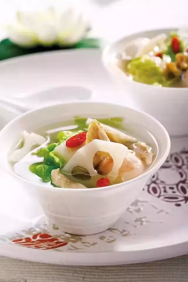原料:鮮藕,蓮子,枸杞,花生,紅棗。