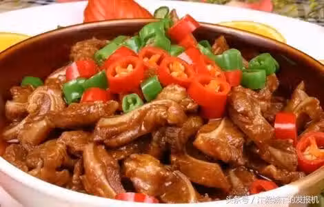 青紅椒、熟牛蹄筋、鹽、蒜、雞精、蔥、醬油、白糖、姜。