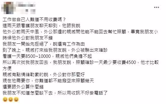 「我是一名看護,最近被親戚要求照顧中風外公,我報價一天4500,卻被嗆憑什麼算錢😔」 #難道自己人就可以不用錢