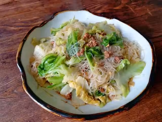 【肉末包菜炒粉絲】