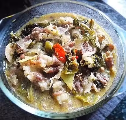 肥牛片;酸菜;泡野山椒;泡辣椒;姜;蒜;胡椒粉;鹽;高湯